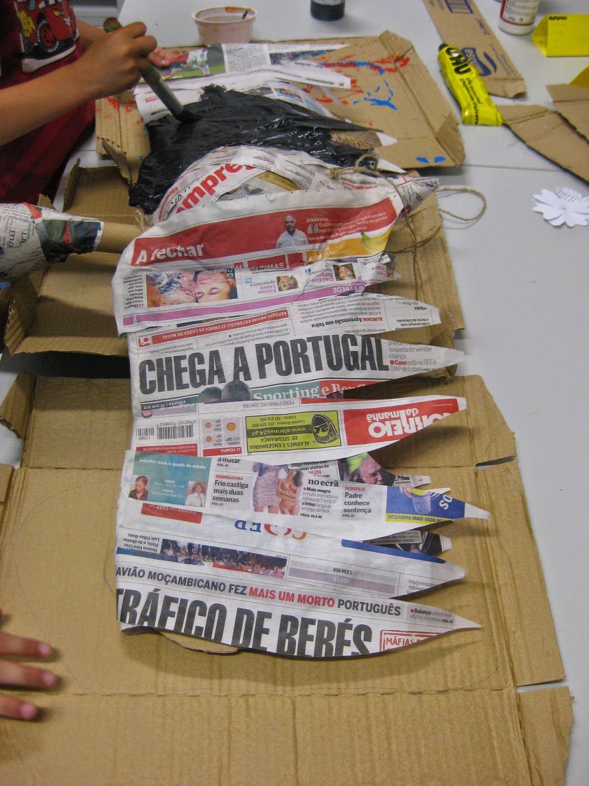 materiais. Desta forma utilizámos jornal velho, rolo de cozinha, ramos