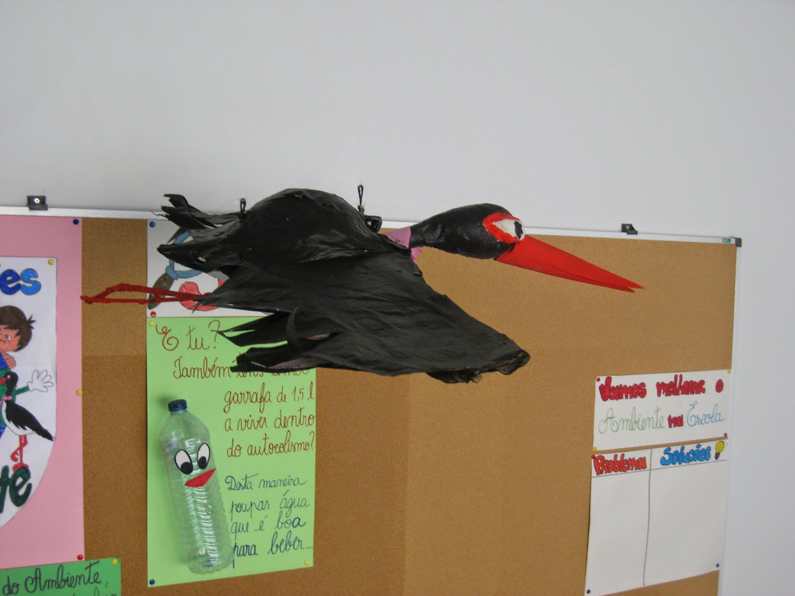 "Assim fizemos uma pesquisa coletiva sobre a cegonha preta na internet, registámos no quadro as ideias principais que tínhamos aprendido e, em grupo produziram pequenos textos temáticos sobre o animal a quem os cientistas chamavam ciconia nigra.